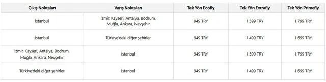 • Tek yön yurt içi uçuşlar 949 TL’den başlayan fiyatlarla satışa sunulacak.